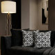 Black and white Deco interlaced pattern with bold geometric structure. This modern design blends symmetry and contrast, creating a sophisticated accent ideal for contemporary or minimalist interiors seeking a refined Deco touch.