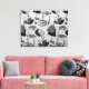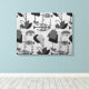 This Black and White Atomic Pattern Stretched Canvas Print is black and white and retro all over. The design features a replica of a vintage 1950's fabric, as seen through the lens of a black and white television program. The modern art shapes include everything from the abstract to the fish! There are small fish swimming to the left, while blowing bubbles. There are larger black and white fish swimming to the right, while blowing grey bubbles. And there are dark grey jellyfish, who don't seem to be doing much of anything. This is the perfect design for anyone who loves fish, fabric, and items with a retro feel. This black and white design proves that you don't have to have colour to be colourful. It's a kitschy blast from the past!