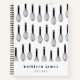 Recipe book with a pattern of balloon whisks with hearts on the handles in a stylish black and white design. Add your name in bold letters!