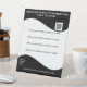 The top and bottom edge of this desktop stand have a black wave banner set against a background colour of your choice. There are templates in a black and white font and one for your business logo too. You can change the colour, style and size of the font and the placement to suit your corporate requirements. Available in different sizes. This is an 8 x 10
