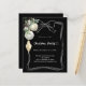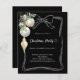 For a Christmas party with family and friends.. Decorated with a white simple hand-drawn bow, white and gold baubles. Personalise and add the details. Christmas party with a heart. Black background.