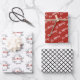 Use our Be Merry wrapping paper sheets to give your Christmas presents coordination. Design features a simple line wreath illustration in black with the words "Be Merry" in a bright red brush script lettering in the middle, "Be Merry" in white brush script pattern, a black and white cross pattern.