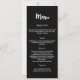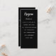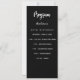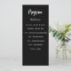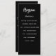 Program and menu card. Personalise and add your name, date and the menu. Black background, white text.
