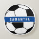 Black White & Blue Soccer Football Sports Monogram Round Cushion