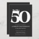 Black White Bold Modern Hello 50 Birthday Party Invitation