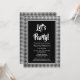 A modern black and white 21st birthday party invitation featuring a bold black and white diamond chequered border.