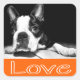 Aww who can resist the sweet face of a Boston Terrier puppy dog? These cute stickers feature a black and white image of a Boston Terrier with a vibrant orange border highlighting the word love.