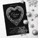 A stylish black and white wood botanical ornamented heart Christmas party invitation.