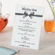 Elegant black and white wedding menu card with chic bow design. A timeless way to present your reception dinner and add a refined touch to your table setting.