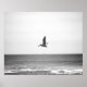 Black & White Brown Pelican Flying Over the Ocean Poster