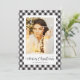 Custom black and white buffalo plaid photo Christmas cards. Easily personalise these chequered photo Christmas cards with your photo and family name.