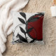 Black White & Burgundy Red Watercolor Leaves Cushion