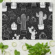 Black & White Cactus Doodle Pattern Tea Towel