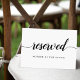 Indicate reserved seating at your wedding with this chic 5x7 sign. Personalize with two lines of custom text in calligraphy script and modern block lettering (shown with "Reserved" and the name of the guest with reserved seating) in crisp black on a white background.