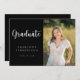 This graduation invitation features an elegant black-and-white theme with a photo. The photo is for placement purposes only and can be replaced with any photo of your choice. Customise text on the front and back of the card to create a truly personalised graduation party invitation. #graduationparty #classof #highschoolgraduation