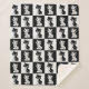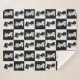 Black White Cat Monogram Block Print Sherpa Blanket