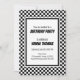Black White Check Pattern Racing Theme Birthday Invitation