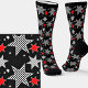 Black White Checked Striped & Red Stars on Black Socks