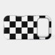 Shock absorbing iPhone case features a sleek black and white checkered pattern made of rows of alternating white and black squares.