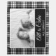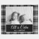 Black and white chequered buffalo plaid fleece blanket with your own photo and text, "All is calm. All is bright." Beautiful Christmas gift idea for grandparents or any family member.