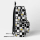 This allover print backpack features a black and white chequered pattern with hearts and daisies and is perfect for school children, ensuring they carry their essentials with style and comfort. Designed for practicality, this backpack features adjustable padded shoulder straps, a spacious interior, mesh side pocket, and an internal identification label and offers ample storage space for books, snacks, and other essentials without compromising on its lightweight structure. This backpack makes a perfect back-to-school gift. This charming backpack will make them the envy of their classmates.