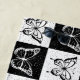 Black and White Decorative Illustration Monotone Chequered Butterfly Block Print Pattern Design