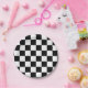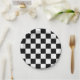 Black White Chequered Check Pattern Paper Plate