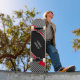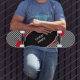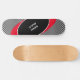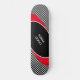 Black and white chess pattern, red wavy lines with black center and calligraphy Skateboard.