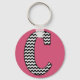 Black and White Chevron Letter C Monogram Initial Round Button Keychain. Personalise your stuff with your initial in style and customise the background colour to suit your taste or decor. You just can't go wrong with a classic Chevron! This traditional zigzag pattern is taking the world by storm. It's Chevron madness! -- and since the Chevron has been around for literally hundreds of years before it became trendy this century. It's here to stay.