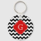 Black White Chevron Red Quatrefoil Monogram Key Ring