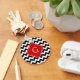 A stylish, modern, chic chevron zig-zag pattern in black and white. Customise the red quatrefoil label with your monogram, name or other text. (Click on "Customise it" to adjust font sizes, colours, etc.)