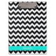 Black White Chevron Zig Zag Brt Aqua Name Monogram Clipboard