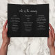 This black and white chic script trifold wedding program flyer is a stylish and functional way to guide your guests through your ceremony. Featuring elegant handwritten-style calligraphy and a clean, contemporary trifold layout, this program provides ample space to include your order of events, wedding party, readings, and personal notes. The classic black and white colour palette adds timeless charm, making it ideal for formal, minimalist, or romantic weddings. A sophisticated keepsake that beautifully complements your wedding suite.