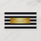 Faux gold foil pattern in a modern Black & White Chic Stripes pattern on this business card. It is perfect for cosmetologists, hair stylists, makeup artists, wedding planner, stylist.