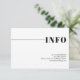 The wedding enclosure card features a stylish and minimalist typography design that effectively captures the essence of simplicity. The black and white colour combination is enhanced by the ample white space, highlighting the sleek and clean lines of the design. A horizontal line on the top of the card adds an element of sophistication, and the word "INFO" cleverly extends the line towards the right side. The back of the card includes a QR code for convenient access to all the essential wedding information for guests.