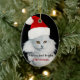 BLACK WHITE CHRISTMAS CAT WITH SANTA CLAUS HAT CERAMIC TREE DECORATION
