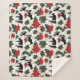 Black & White Christmas Holstein Dairy Cows Floral Sherpa Blanket