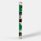 Fun Black and White Christmas Snow Stripes With Decorative Red and Green Trees with falling white and yellow shinny Snowflake iPhone Case Surface Pattern Design.