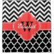 Two Patterns: White Moroccan Quatrefoil Trellis Pattern #5 and Large Chevron Zigzag with Initial + Name Monogram on Coral Red Quatrefoil with Ribbon