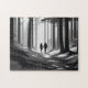 Black & White Couple Silhouette in Forest Jigsaw Puzzle
