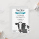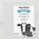 Destei's original cartoon illustration of a cute black and white colour cow looking towards the viewer with brown eyes. The overall colour scheme is grey and black, but there is a blue banner giving the design a pop of colour. Personalise the sample text areas with the details of your event.