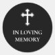 Black White Cross Elegant In Loving Memory Classic Round Sticker
