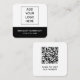 Simple, modern, minimalist black and white square business card with custom logo and QR code on the back.