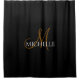 Black White Custom Monogram Script Name Shower Curtain