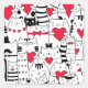 Black White Cute Cat Red Heart Square Sticker