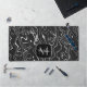 Black white damascus abstract custom monogram Desk Mat. Personalise with your custom initial and name. Black, grey and white damascus abstract design marble liquified swirl and dots pattern.
