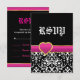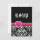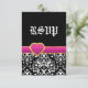 Black white damask hot pink heart wedding RSVP Card