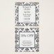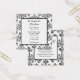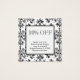 An elegant custom salon, coffee house or restaurant business discount card with script and serif letters for your address and information on an elegant black damask pattern on white, and larger letters on the back for your discount information.