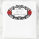 Black/White Damask Red Ribbon Oval Sticker