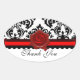 Elegant,classy Art Nouveau damask "Thank You " Sticker with a red stripe by Bulgan Lumini (c) .Easy to customise with your initials and own text  as an announcement ,save the date, bridal showers,sweet 16 birthday parties, anniversary,engagement showers, or just about any event you wish!